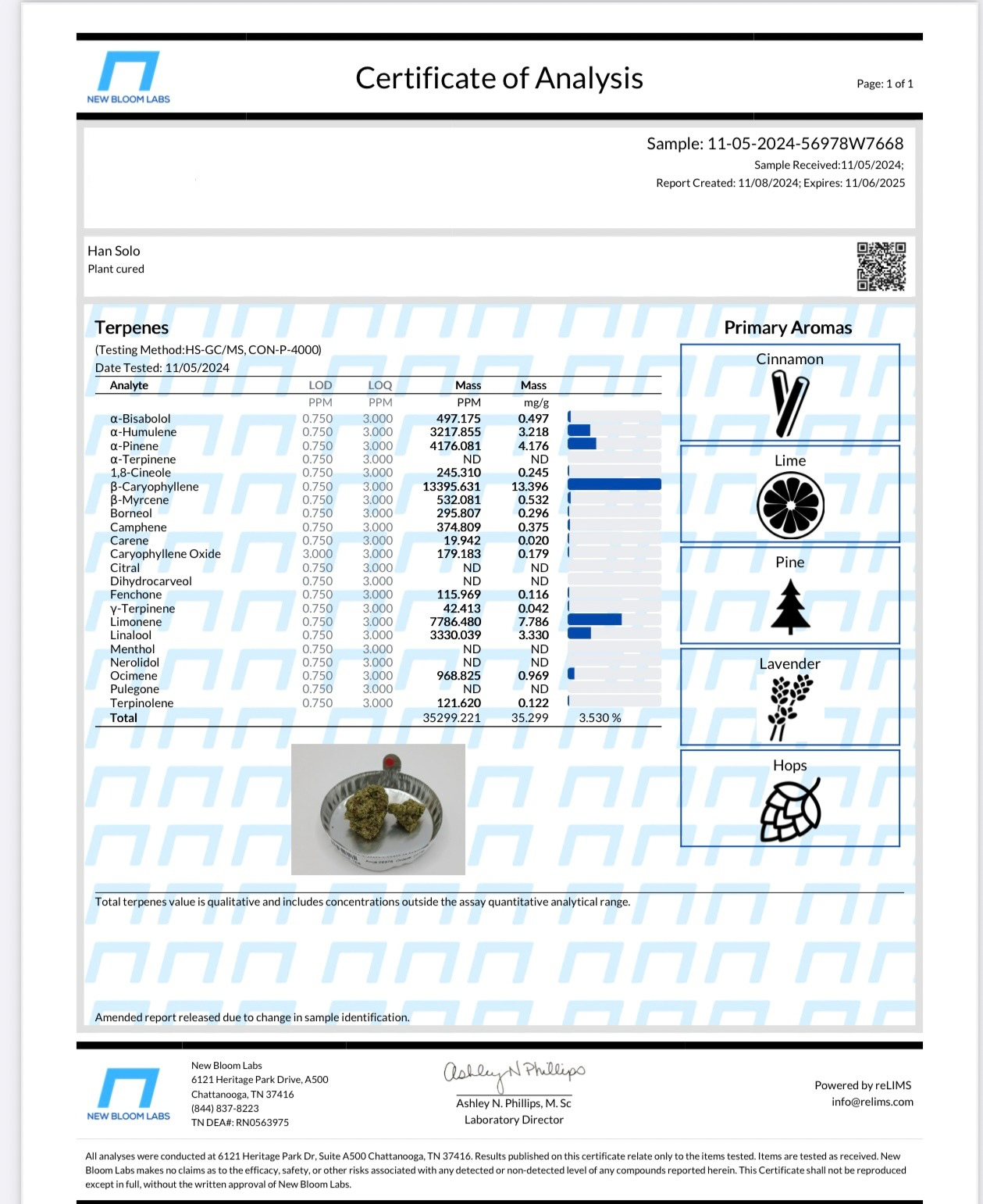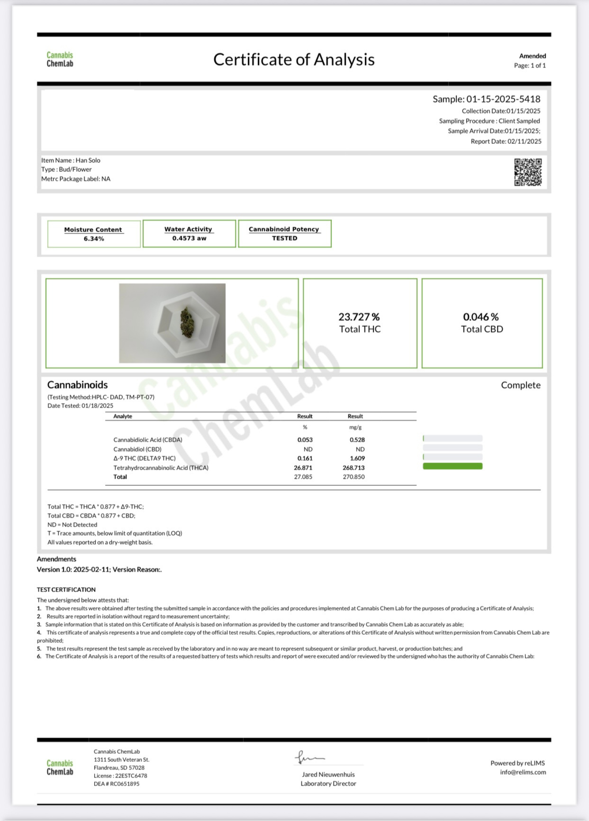 Han Solo [Living Soil] (Indica), 26.871% THCa (<0.3% Delta-9 THC)