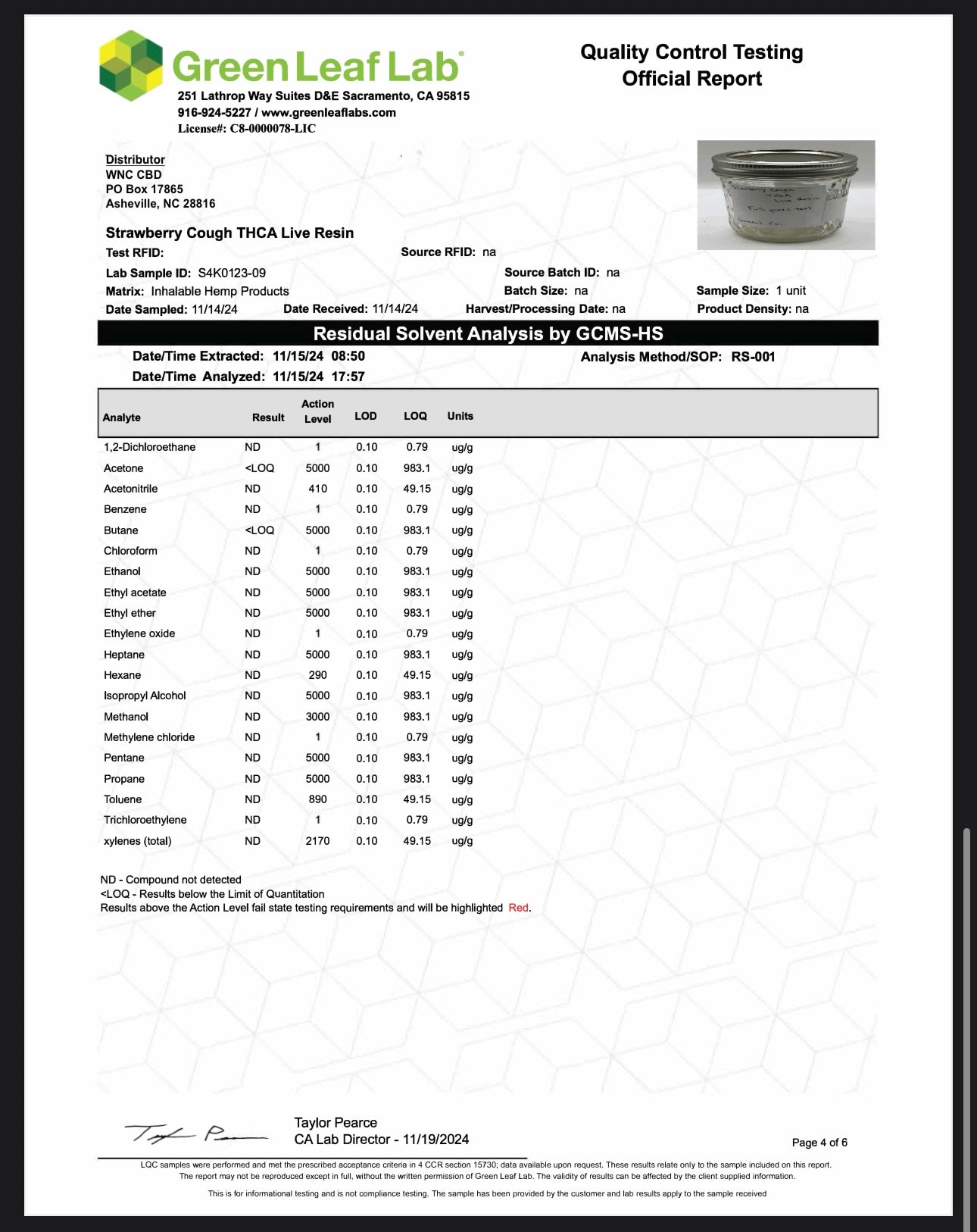 Strawberry Cough (Sativa)- 86.00% THCa— Total Cannabinoids: 86.00%